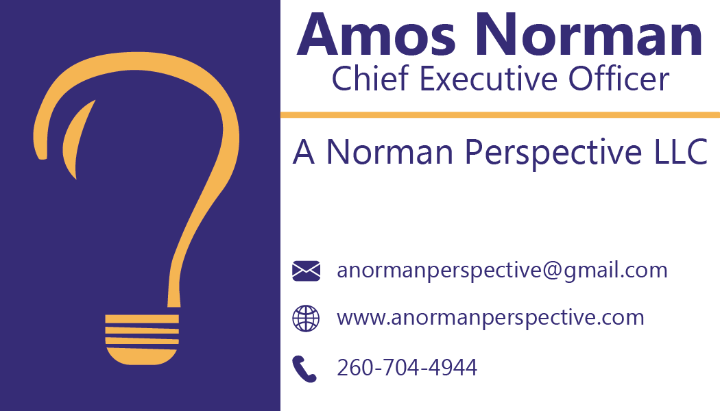 In 2022, a family friend by the name Amos Norman, came to me with a logo idea for his business he was starting. I developed and modified the concept and turned it into a reality. I designed his logo and business card. Over the years, I have also photographed multiple events he has hosted.